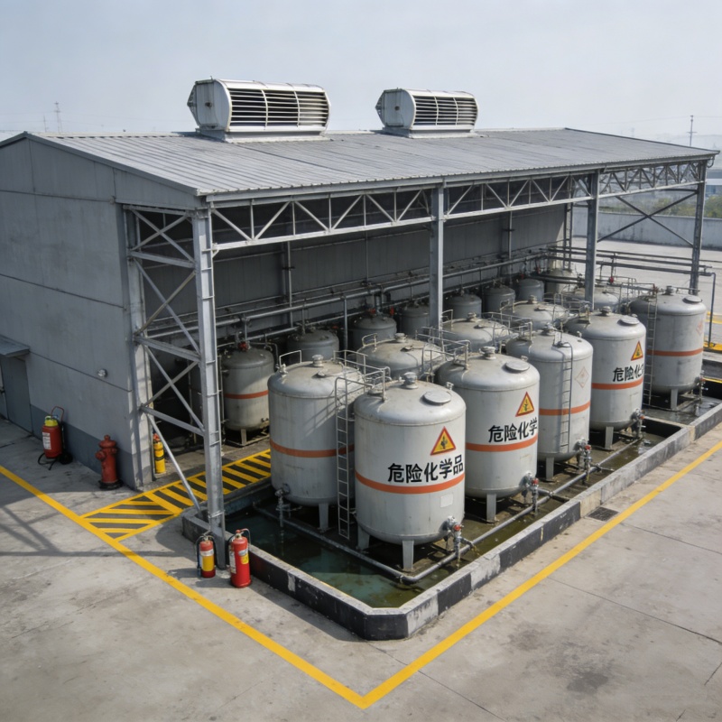 化工原料仓库、医药危化品库房、油漆涂料仓库、有机溶剂储存间、易燃易爆气体库房、腐蚀品仓库、实验室危化品柜等。