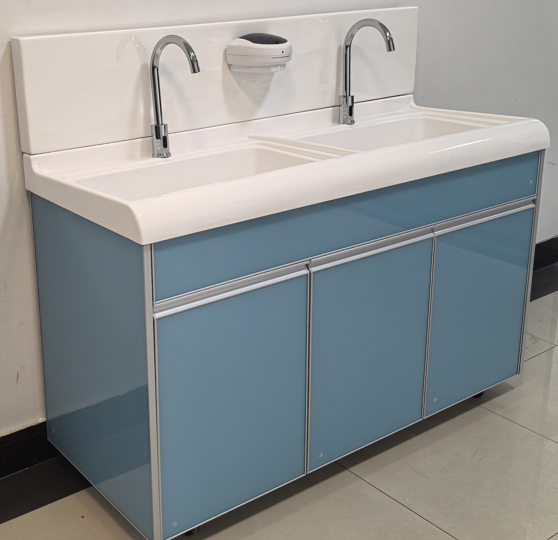 高分子二人位洗手池 医院用感应式实验室刷手池