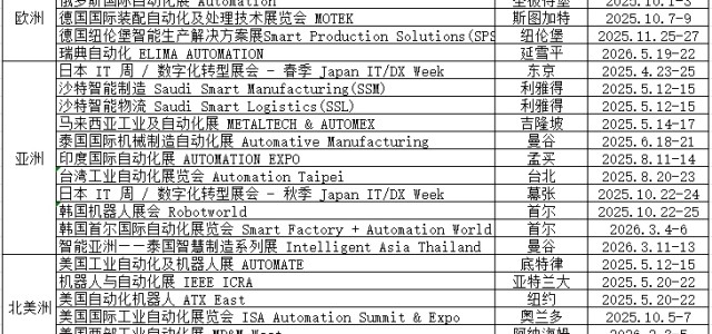 亚洲地区26年有什么自动化展会推荐