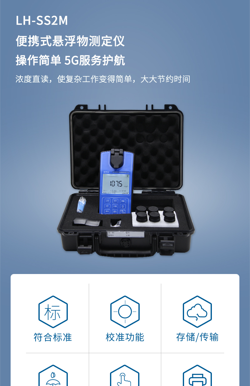 LH-SS2M悬浮物测定仪采用管比色,测定快速准确,适合野外监测,主要用于测量悬浮于水(或透明液体)中不溶性颗粒物质所产生的光的散射或衰减程度,并能定量表征这些悬浮颗粒物质含量的仪器。