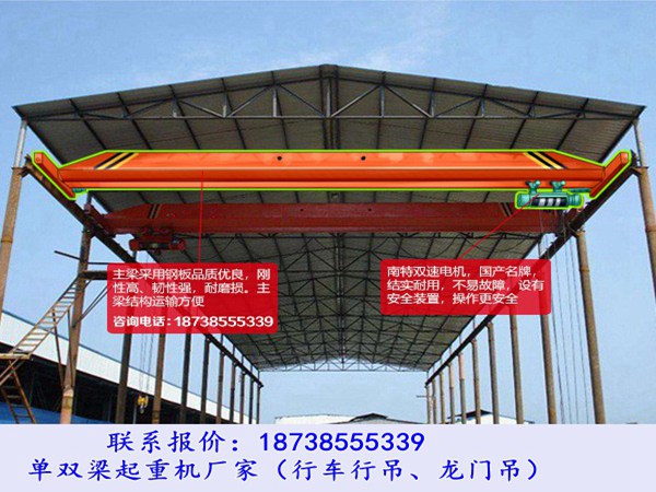 重庆桥式起重机销售公司生产的电动单梁起重机是目前大多数企业广泛使用的起重机品种之一,经济实用,其额定载荷理论上可高达20吨甚至32吨。但常用的额定载荷大多在3吨到16吨之间,常用于一般用途,如起重机械、加工件、钢管、毛坯、模具等。它采用电动葫芦作为升降机构,一般不适合有爆炸性气体、可燃性粉尘、腐蚀性气体的环境,也不适合升降和熔化。如果在这些特殊的工作环境中使用,应根据相应环境的起重机标准进行设计和制造。