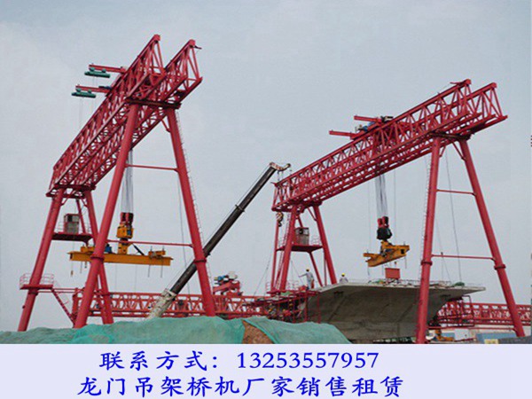 广西梧州龙门吊销售厂家龙门吊的参数有:起重量、跨度、起升高度和运行速度。单片梁重量要是200T,用两台龙门吊的话就需要单台达到100吨的起重机。龙门吊的吨位根据梁片的规格、重量以及梁场的设计情况而定。也可以用一台200吨的双小车的龙门吊来完成抬吊作业。龙门吊的起重机是根据单片梁来决定的。龙门吊的跨度是根据场设计的,龙门吊的起升高度是根据作业时所需要把梁片提升的高度而定的,运行速度基本又是固定的每分钟10米、20米、30米。
