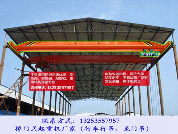 湖北荆州行车行吊生产厂家制造的桥式起重机的型号有单梁起重机和双梁起重机,单梁行吊的构造相对于双梁来说简单一些,同时也能够节省一些制造上的材料成本和运行工作时候的空间成本。