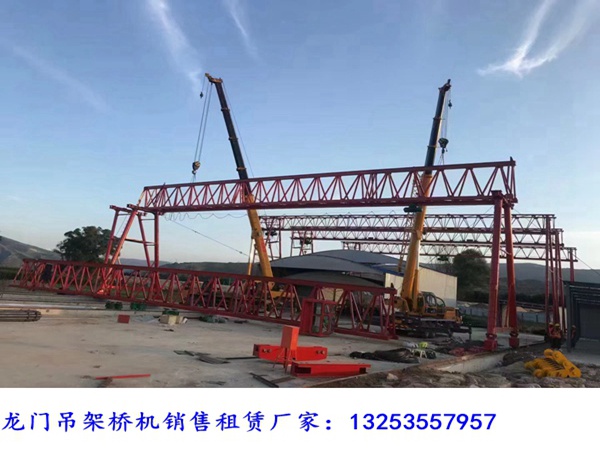 甘肃白银龙门吊出租厂家MG型桁架龙门吊;龙门吊额定起重量:100吨(T)可定做;龙门吊有效起升高度:9米、12米、20米、22米(M)可定做;龙门吊跨度:24米、32米、40米、42米(M)可根据用户提供参数非标设计;龙门吊悬臂长度:无固定参数可以定制定做(米);路桥门机操作形式:司机室、无线遥控操作;龙门吊结构形式:桁架式龙门吊、包箱式龙门吊;100T龙门吊大车运行速度20m/min,各运行参数可定制修改。