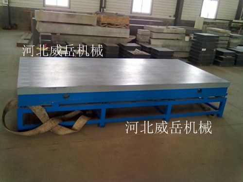 铸铁焊接平台适用于各种检验工作,精密测量用的基准平面,用于机床机械测量基准,检查零件的尺寸精度或形位偏差,并作精密划线。在机械制造中也是不可缺少的基本工具。经过两次处理(人工退火600度----700度和自然时效2---3 年,使该产品的精度稳定,耐磨性能好。按国家标准计量检定规程执行,分别为0,1,2,3级四个级别。