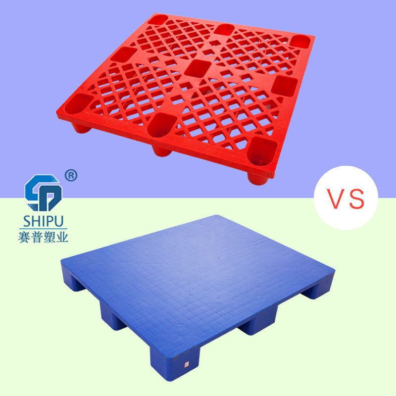 想要确定托盘样式,需要了解使用场景再确定。通俗的来说,九脚塑料托盘网格的通风透气更好些,平板的托盘不会让货物下面有压力。这两种托盘优势不一样,不能跟风选择。