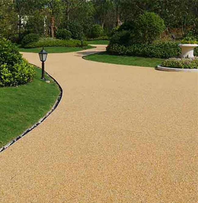 彩色胶粘石地坪应用中的优势:1、改善城市“人造沙漠‘’现状,平衡城市生态系统2、强大的透水性能,有效补充地下不资源,提高水质量3、路面不积水,保持土壤温度;色彩丰富,增加城市和谐魅力4、通透"地气”使地面冬暧夏凉5、雨季透水,冬季化雪,增加城市居住的舒适度6、吸附粉尘,减少扬尘污染7、防滑降噪,增加城市绿意8、根据需要设计制作各种图形,充分实现设计师创想,赋予艺术风彩9、天然材质、天然色彩,美化城市环境10、施工方便,工艺简单