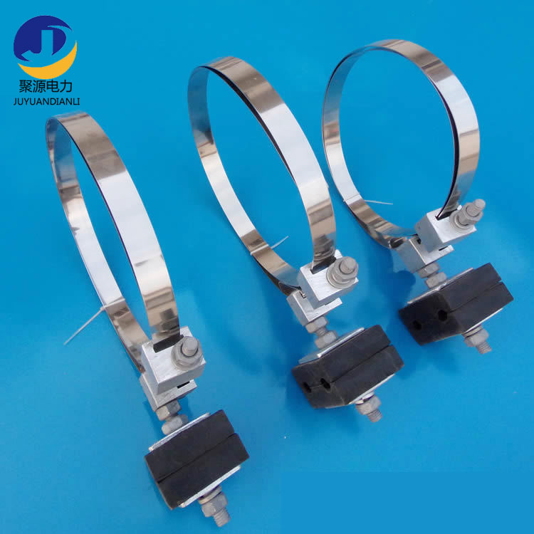 引下线夹具组件用途:引下夹具主要用于ADSS及OPGW光缆在杆塔上引线时的固定安装。如,在光缆接头杆(塔)处,光缆从夹持金具引到接续保护盒安装处的固定作用;光缆从杆塔上引下到地下管道,电缆沟、直埋,以及引下进入机房等处的固定。避免光缆在风力作用下与杆塔或其他物件摩擦而损坏光缆,以保护光缆的安全。我们能提供以下型号的引下夹具,分别是:塔式引下夹具和杆式引下夹具。